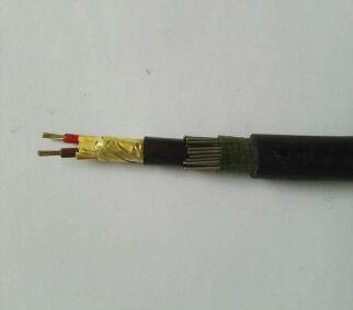 在缆芯的外表面绕包聚四氟带形成包带层,在包带层和总屏蔽引流线上编织镀锡铜丝总屏蔽层,在总屏蔽层的外面挤包可融性聚四氟乙烯树脂PFA材料形成外护套层。本实用新型适用于分度号为S、R、N、K、E、J和T型热电偶配用的补偿电缆,具有高阻燃、耐高/低温、防电磁干扰、制造简单等优点。