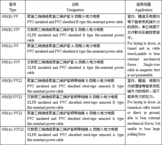 产品标准 本产品按GB12706《额定电压35kV及以下铜芯、铝芯塑料J缘电力电缆》和GB12666《电线电缆燃烧实验方法》标准生产,同时还可根据用户需要按国际电工委员会推荐的IEC标准、英国BS标准、德国DIN标准、美国ICEA标准及日本JIS标准生产。 The product is manufactured according to the standard of GB12706 and GB12666 or IEC,BS,DIN,ICEA,and JIS upon request.适用范围 本产品适用于工频额定电压0.6/1kV及以下配电线路或工业装置中有耐火要求的固定敷设场所使用。 The product is suitable for use in power distribution lines or fixed installations with rated power-frequency voltage up to and including 0.6/1kV. 使用特性 ·工频额定电压U0/U:0.6/1kV。 Rated power-frequency voltage U0/U:0.6/1kV. ·电缆导体的高允许长期工作温度(PVC/XLPE):70℃/90℃. Max.permissible continuous operating temperature of conductor (PVC/XLPE): 70℃/90℃ ·短路时(长持续时间不超过5s)电缆导体高允许温度 PVC:导体截面≤300mm2-160℃ 导体截面>300mm2-140℃ XLPE:250℃ Max.short-circuit temperature of the conductor shall not exceed(5s maxiumduration): PVC:cross-section of conductor≤300mm2-160℃ cross-section of conductor>300mm2-140℃ XLPE:250℃ ·电缆敷设时环境温度应不低于0℃ The ambient temperature under installation should not below 0℃ ·电缆的弯曲半径:多芯电缆不小于电缆外径15倍,单芯电缆不小于电缆外径20倍。 The bending radius of a single-core cable should not less than 20 times of the cable diameter. The bending radius of multicore-cable should not less than 15 times of the cable diameter. |