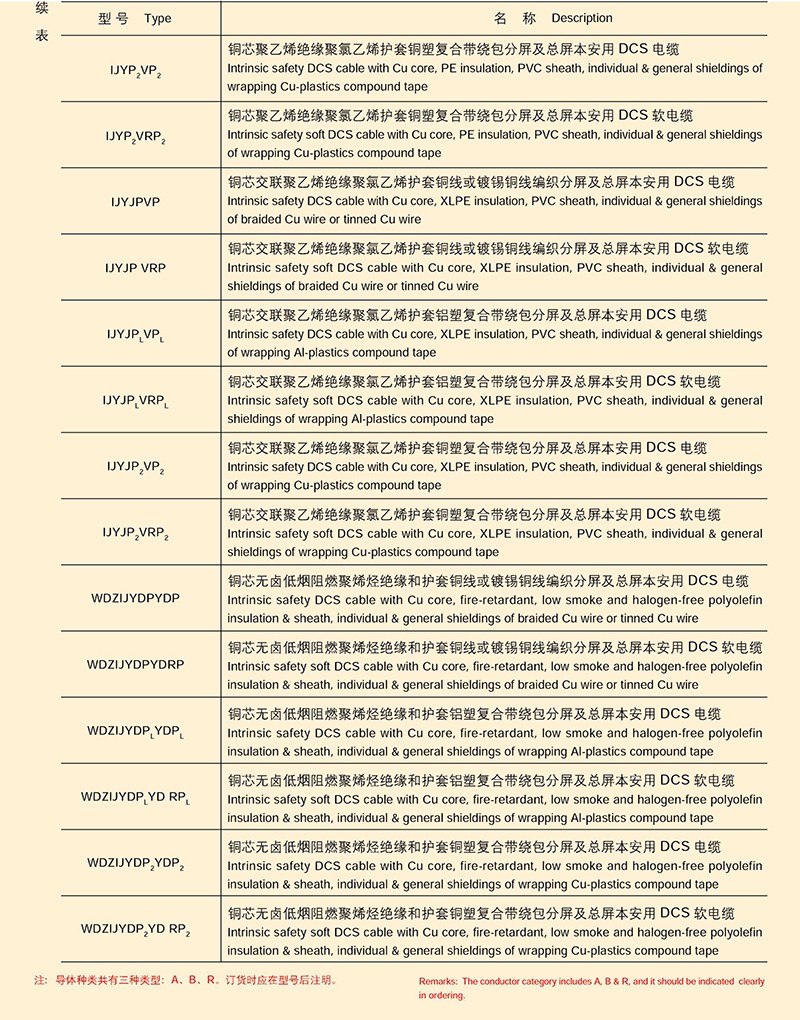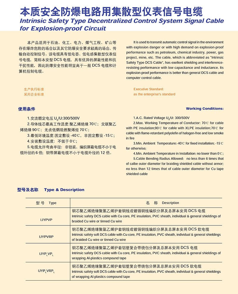 本质放心防爆电路用集散型仪表信号电缆